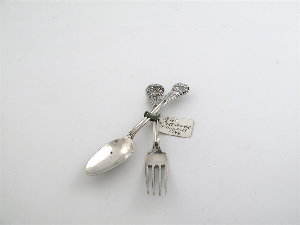 Portugese. A dessert spoon and fork, shell and fruit finials, Guimaraes, 1784 (2)