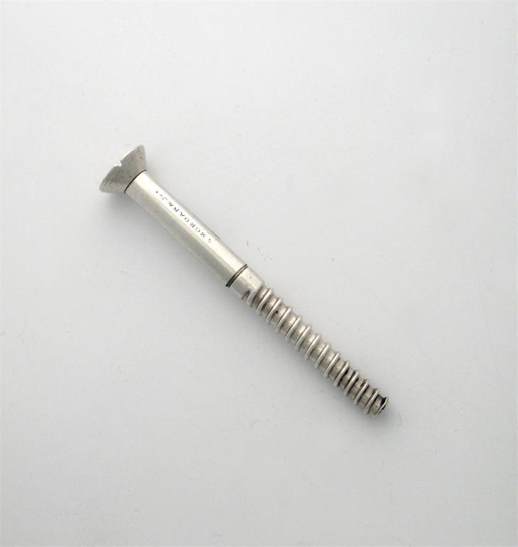 A novelty pencil, in the form of a three inch (7.6cm) wood screw, engraved R D J, by Sampson Mordan & Co, circa 1900, 3in (7.6cm) long.