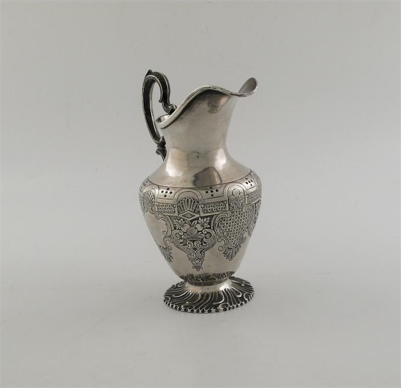 A Victorian Irish cream jug with a helmet rim, chased vase-shaped body and a matted circular foot, by J. Mahoney, Dublin 1845, 7.2in (18.2cm), 9.5oz