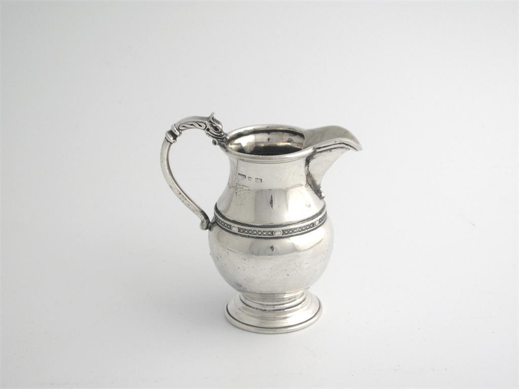 A 20th century milk jug, with a griffon shell handle, maker H. Bros, probably colonial, possibly South African, 4.25in (11cm) high, 5.5oz