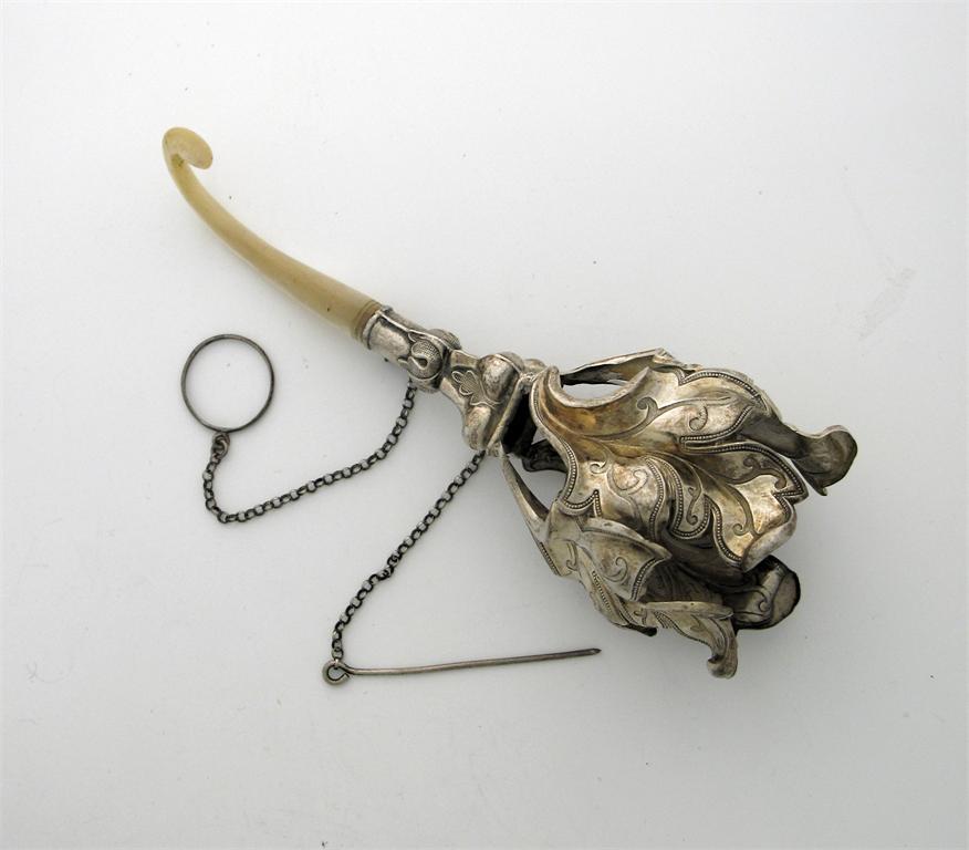 A modern conical posy holder, with vacant cartoche of suspensory made chain, by Adie lovekin LTD Chester 1911. 5.5in (14cm) long.