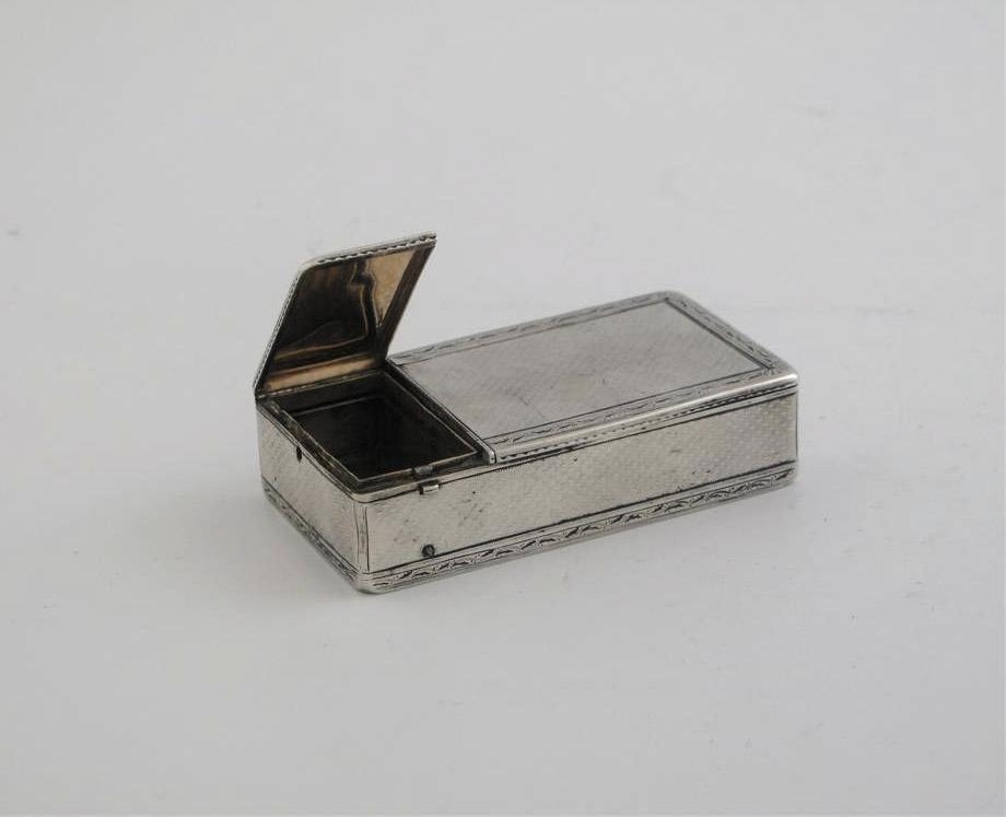 A 19th century continental oblong snuff box, with engine turning and two hinged compartments (one probably originally housed a musical movement), unascibed probably 1810-1825, 3.5in (9cm) long, 3.25oz.