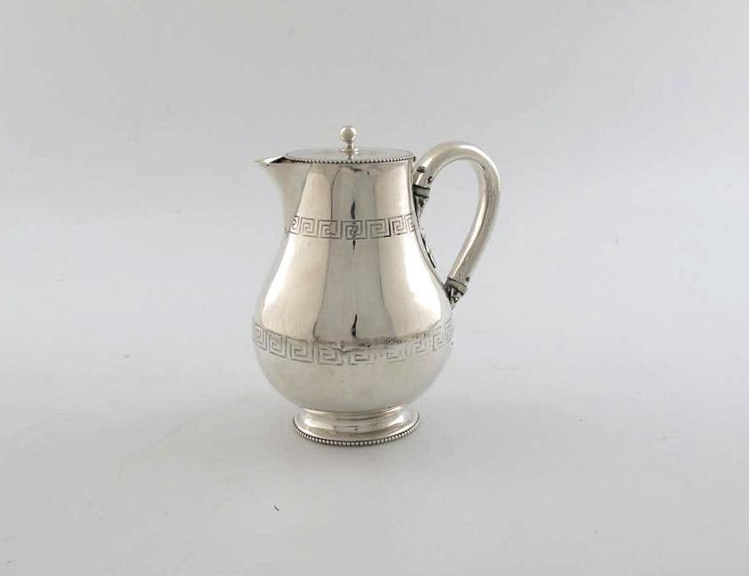 A Victorian hot water jug of baluster form with Greek key bands and beaded borders, by George Angell, London 1860, 6in (15.2cm) 9.5oz all in