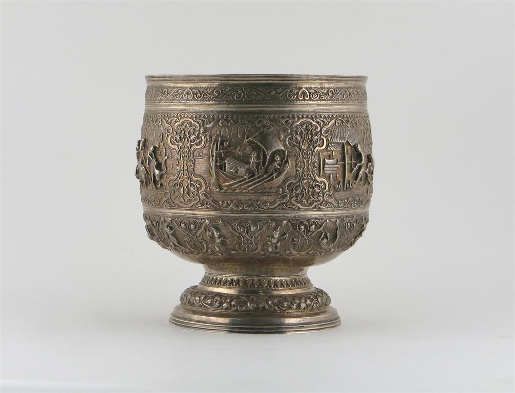 A South East Asian silver coloured metal bowl