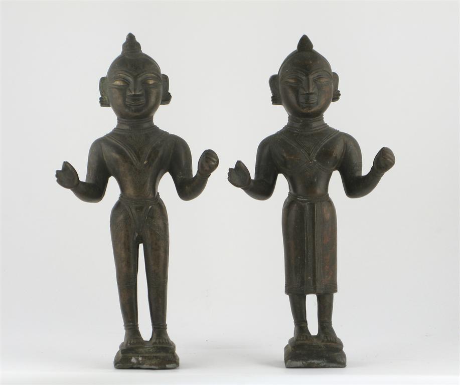 A pair of Indian bronze standing figures of a man and a woman