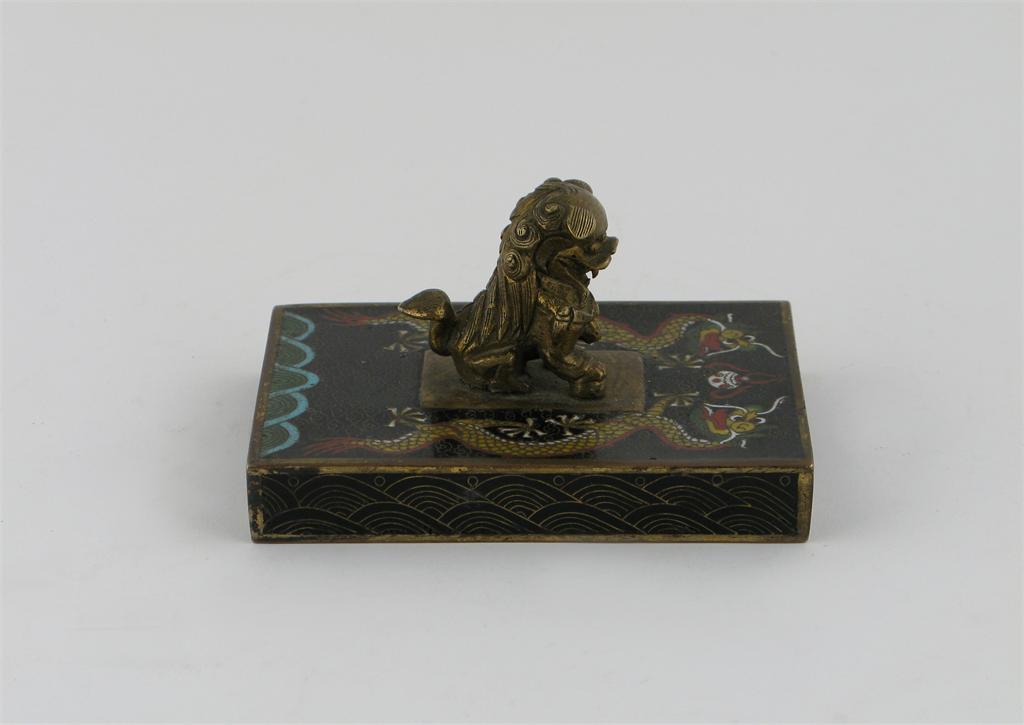 A Chinese cloisonné scroll weight