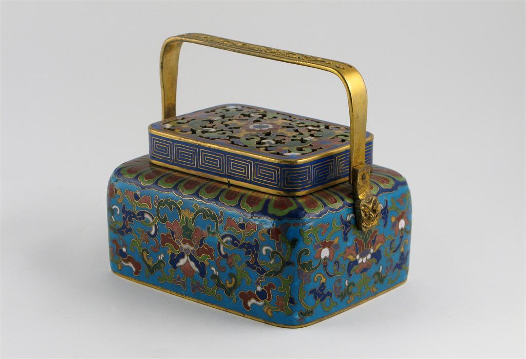 A Chinese cloisonné basket and cover