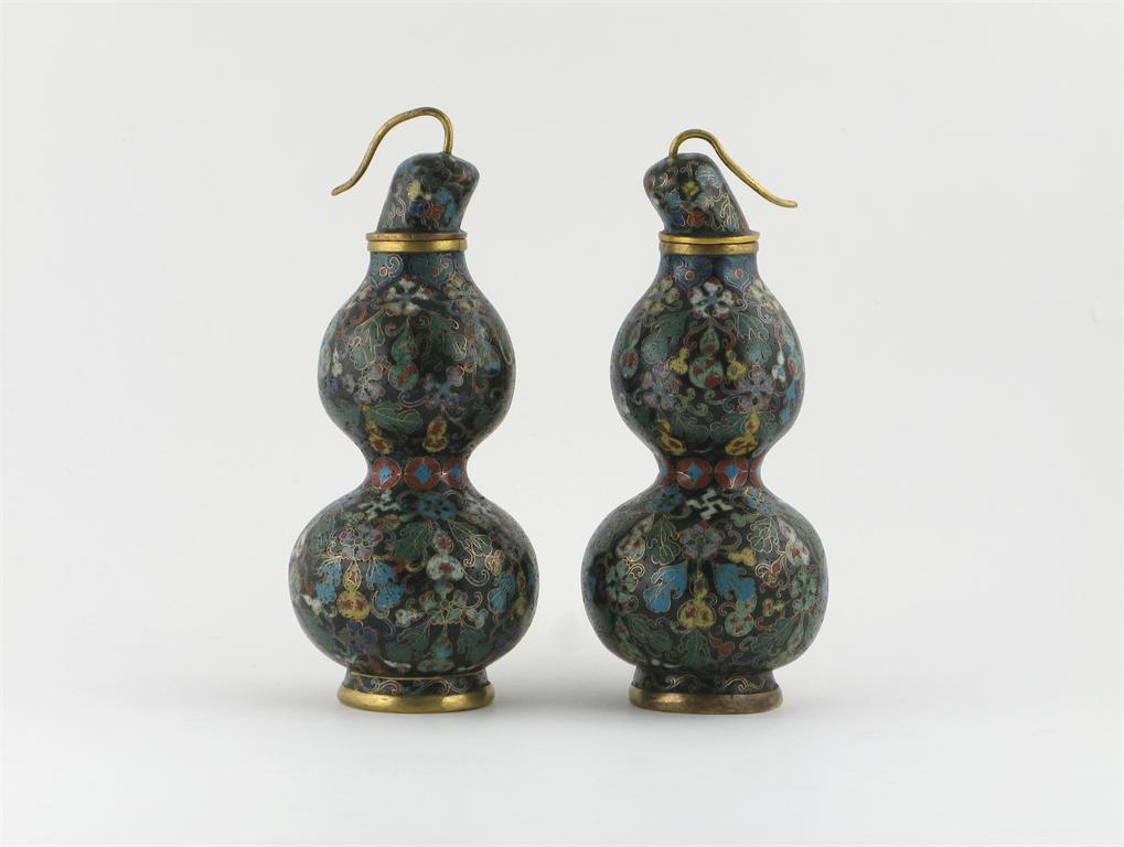 **A pair of Chinese cloisonné gourd-shaped vases