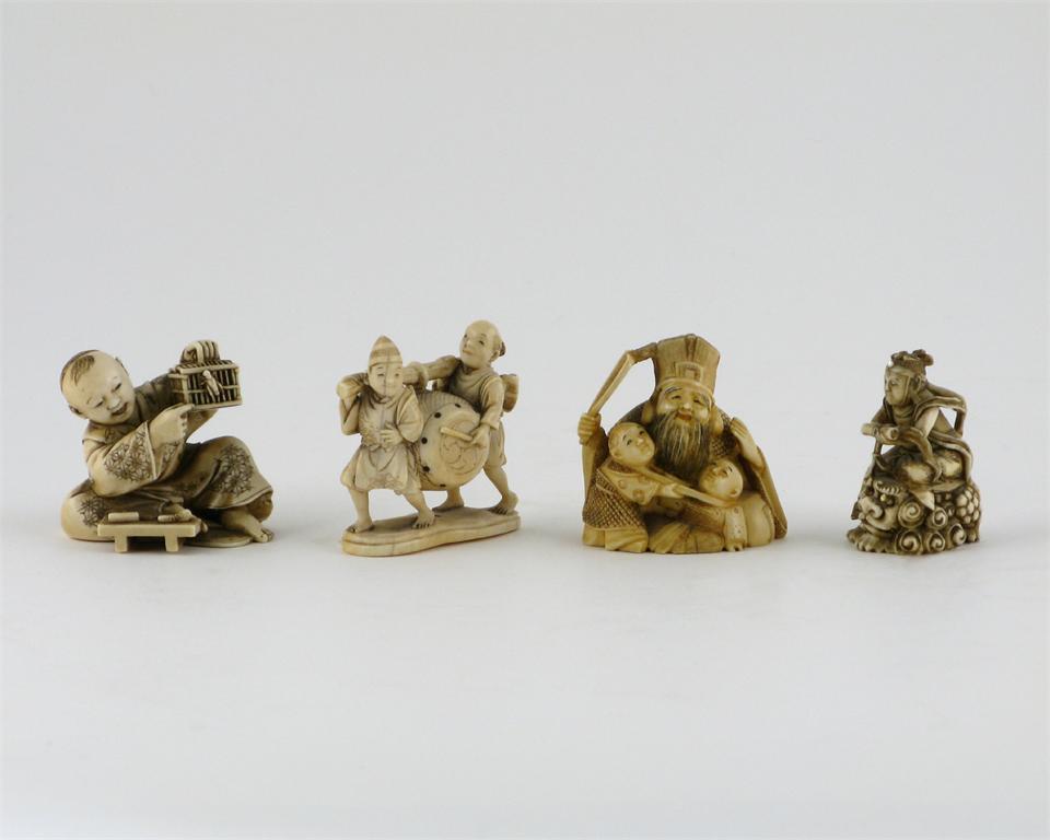 Four small Japanese ivory okimono