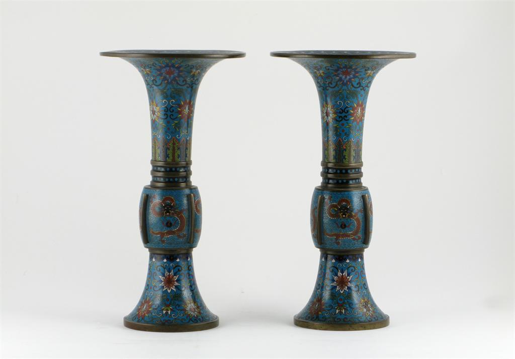 **A pair of Chinese cloisonné gu-shaped vases