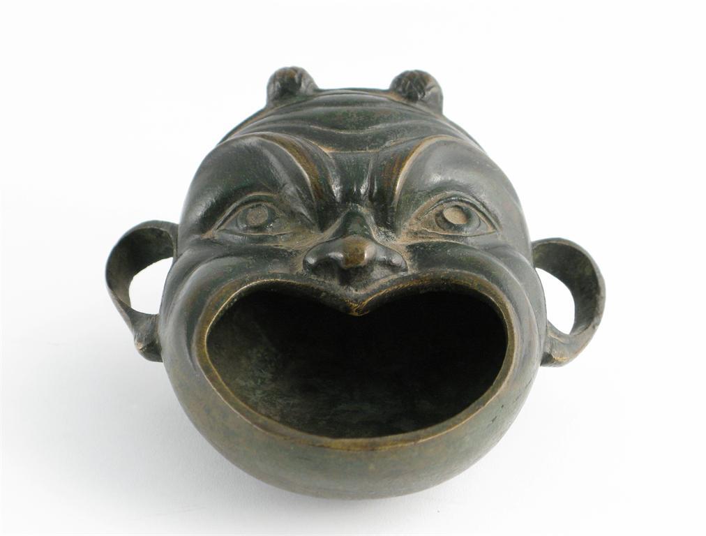 A Japanese bronze incense burner, cast as a grotesque Noh mask, 19th century, 11cm.