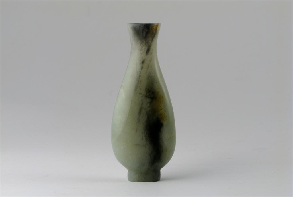 **A Chinese celadon and grey flecked jade slender ovoid vase