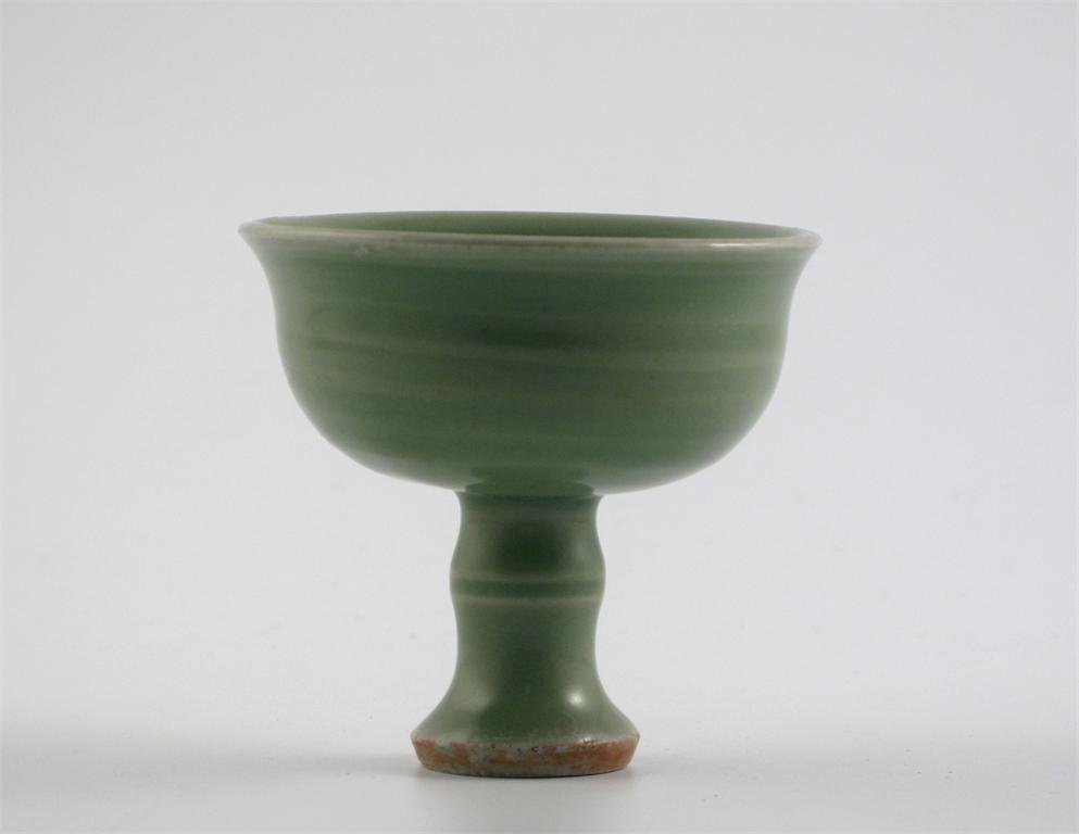 A Chinese celadon stem cup, with a slightly flared rim and turned foot, 9cm.
