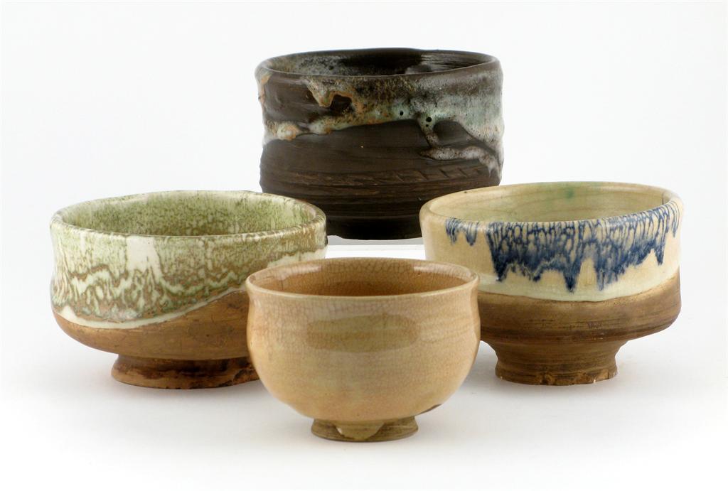 Four Japanese studio pottery bowls, three decorated with unctuous coloured glazes, 20th century, 13.5cm. (4)