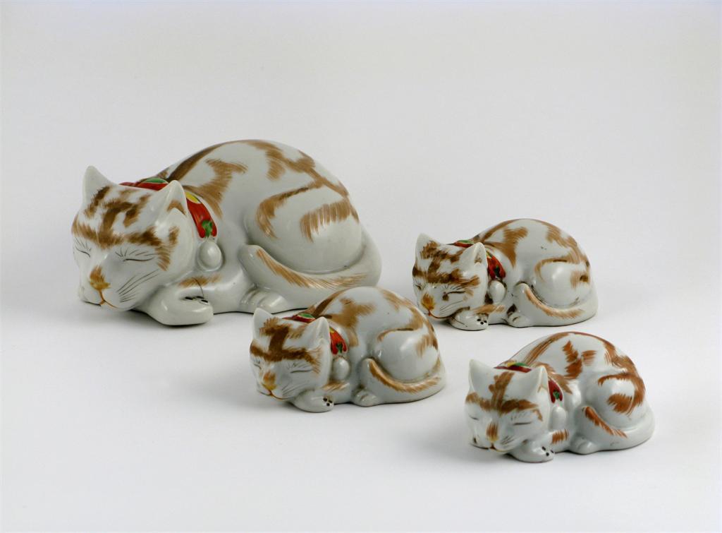 One large and three small Kutani models of cats