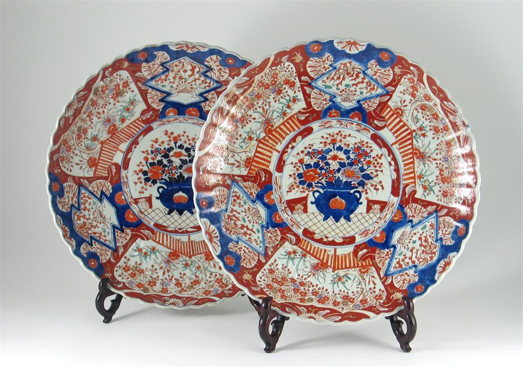 A large pair of Japanese Imari fluted dishes