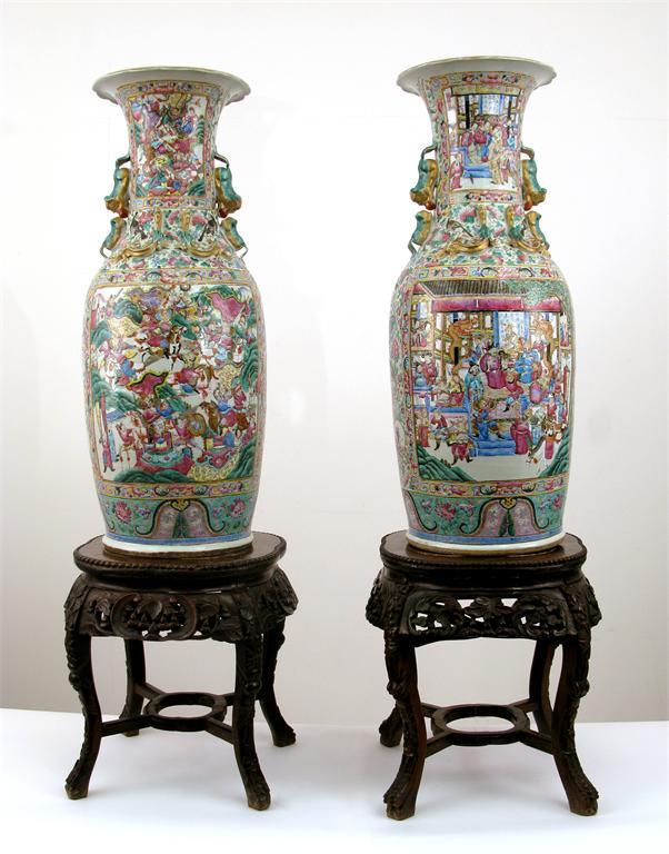 A massive pair of Chinese Canton famille rose baluster vases