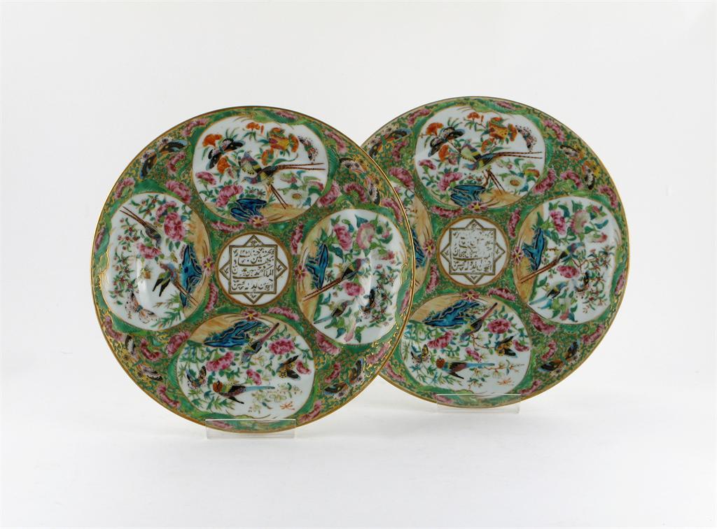 A pair of Chinese Canton famille rose plates made for the Islamic market