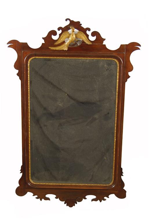 A late Victorian mahogany and parcel gilt fret frame mirror