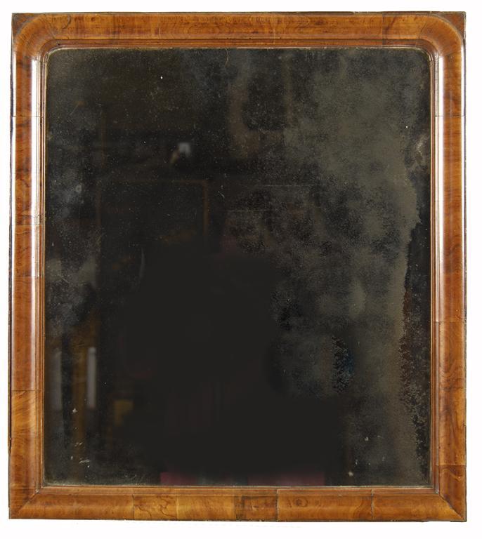 A walnut mirror, the bevelled plate to a moulded frame, formerly part of a dressing table mirror, 23.5 x 21in (59.5 x 53.2cm).