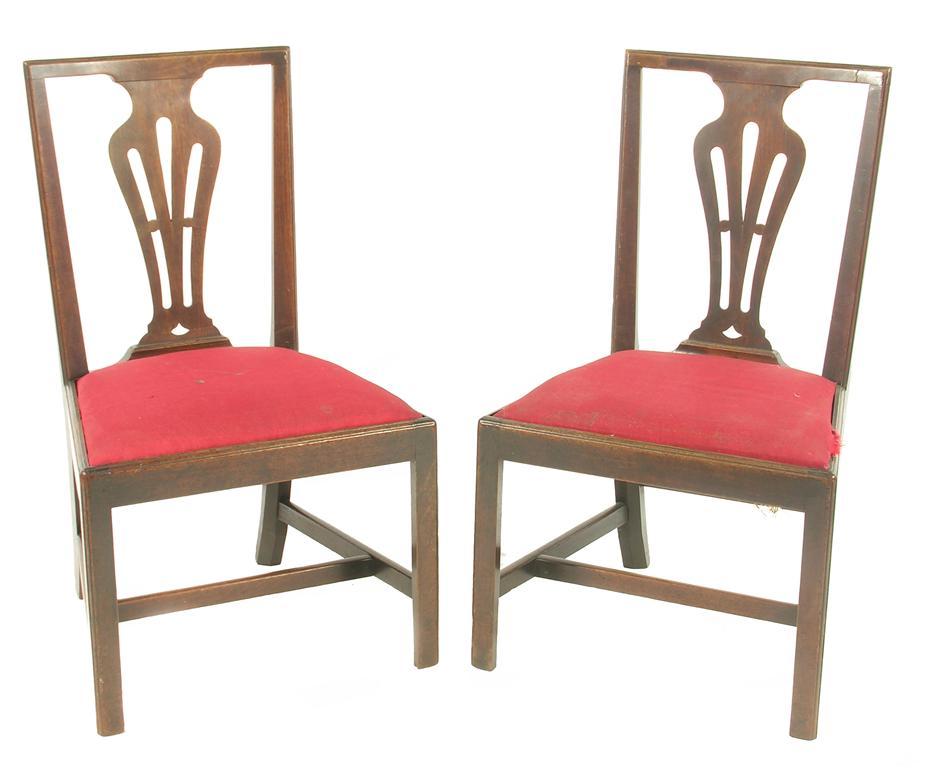 A pair of early George III walnut side chairs