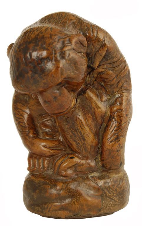 A leather covered model of a seated monkey
