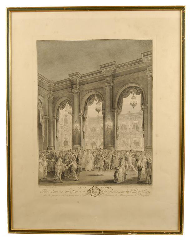 After Moreau. Title: 'Le Bal Masque', an engraving, 20.5 x 15.5in (52 x 39cm) and another engraving, 'Premier Journee'. (2)
