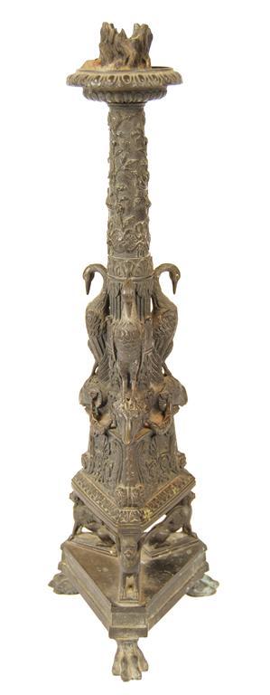 A 19th century bronze candlestick, after the antique, 15.75in (40cm) h.