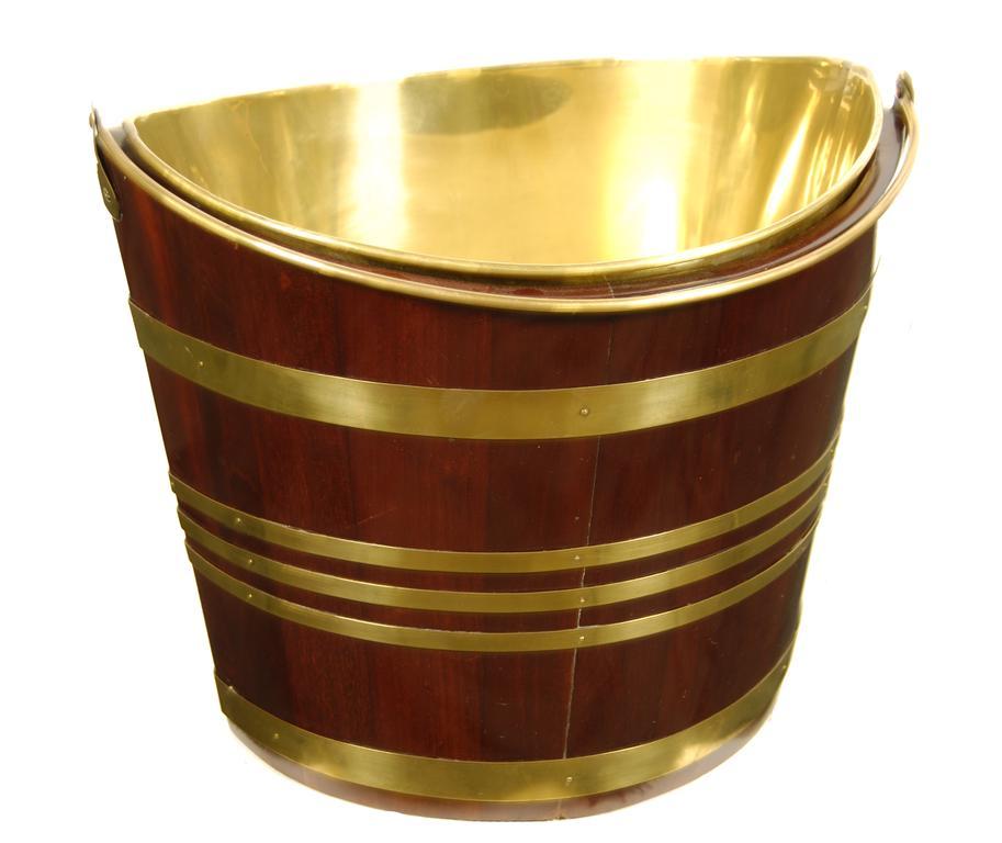 A Dutch mahogany and brass banded bucket