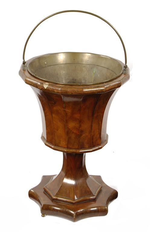 A Dutch mahogany brazier, with a brass swing handle and a lift-out liner, 19.75in (50cm) h, 15in (38cm) dia.