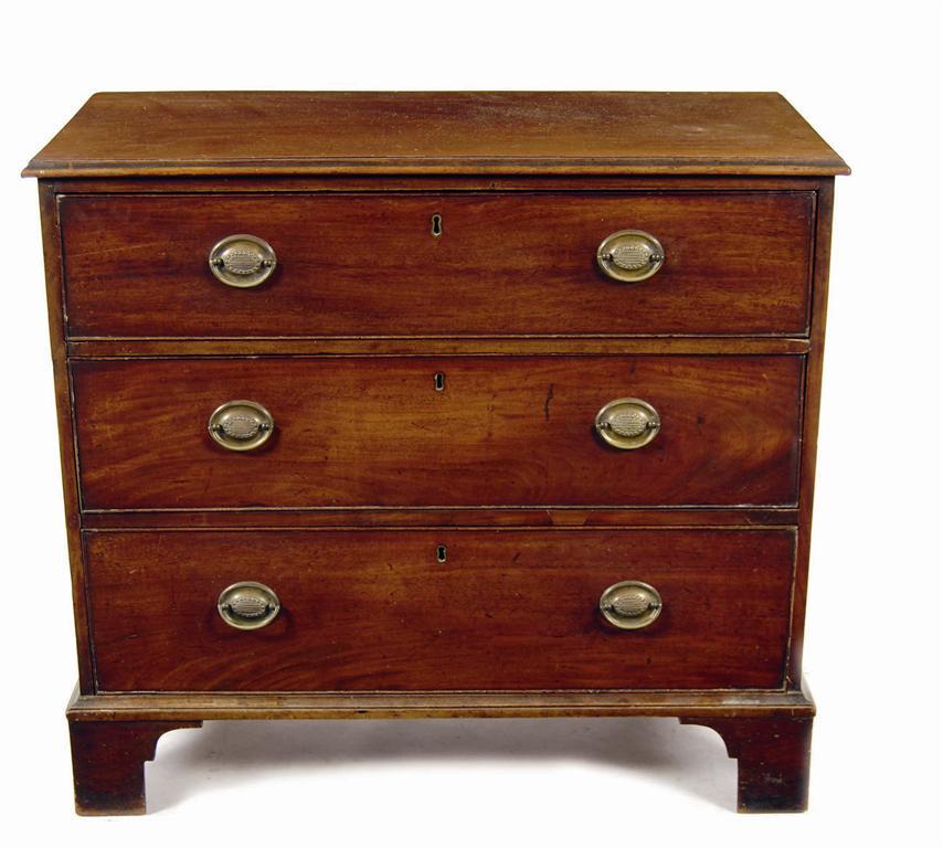 A 19th century mahogany chest, the moulded edge top above three graduated drawers, on bracket feet, with pine sides, 33.75in (85.3cm) h, 37.5in (95.5cm) w, 18.5in (46.7cm) d. Cracks to top.