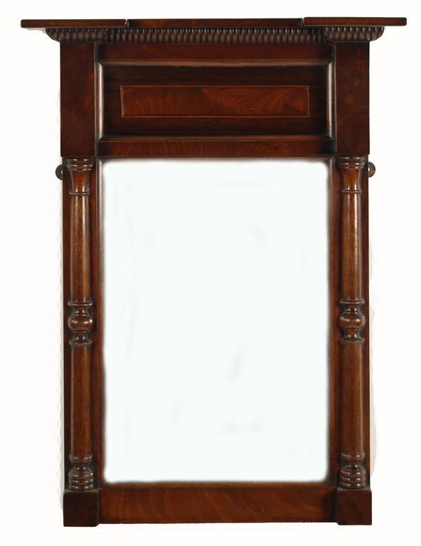 A William IV mahogany wall mirror, with a rectangular plate and a panelled frieze with rosewood and stringing, 25.5 x 19in (65 x 48cm).