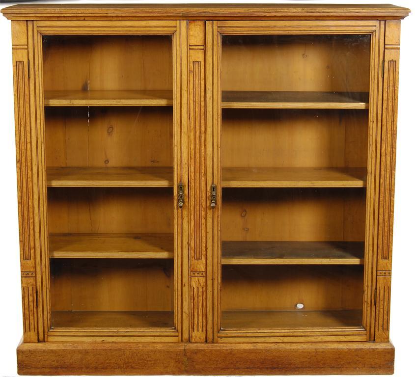 An oak bookcase, with a pair of glazed doors enclosing adjustable shelves,19th century but adapted, 47.75in (121.2cm) h, 50in (127cm) w, 13in (33cm) d. Losses.