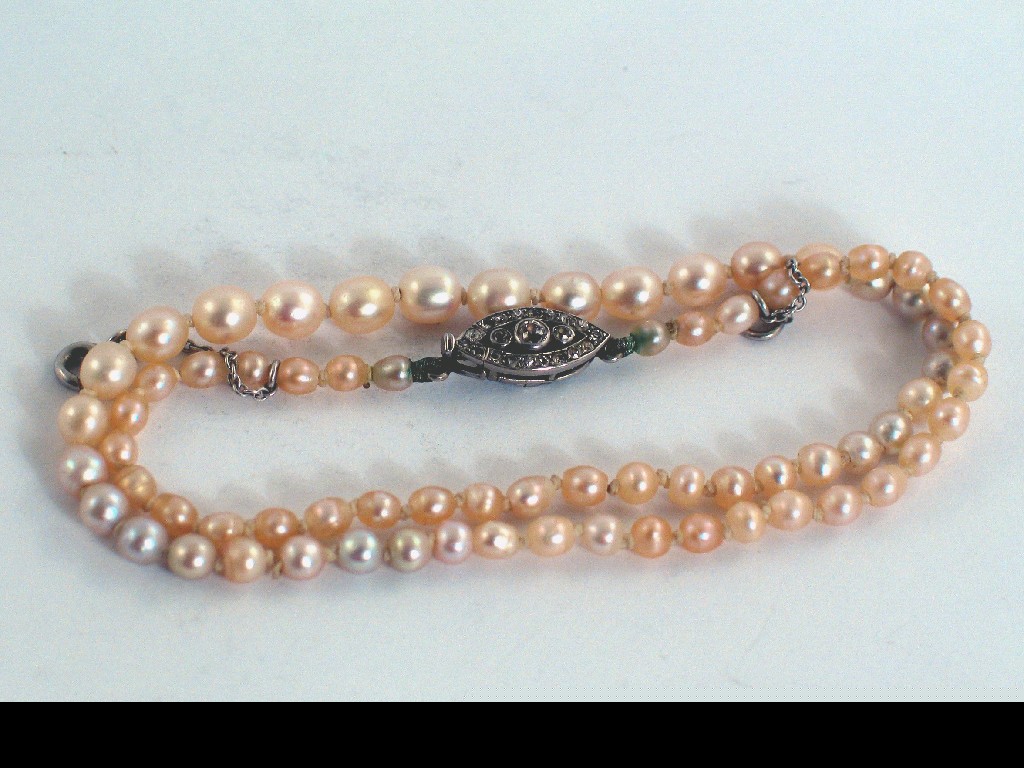 A graduated single row natural pearl necklace