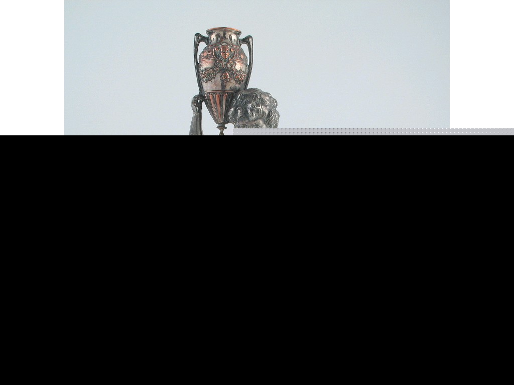 A late 19th century continental plated model of a putto carrying a vessel on one shoulder