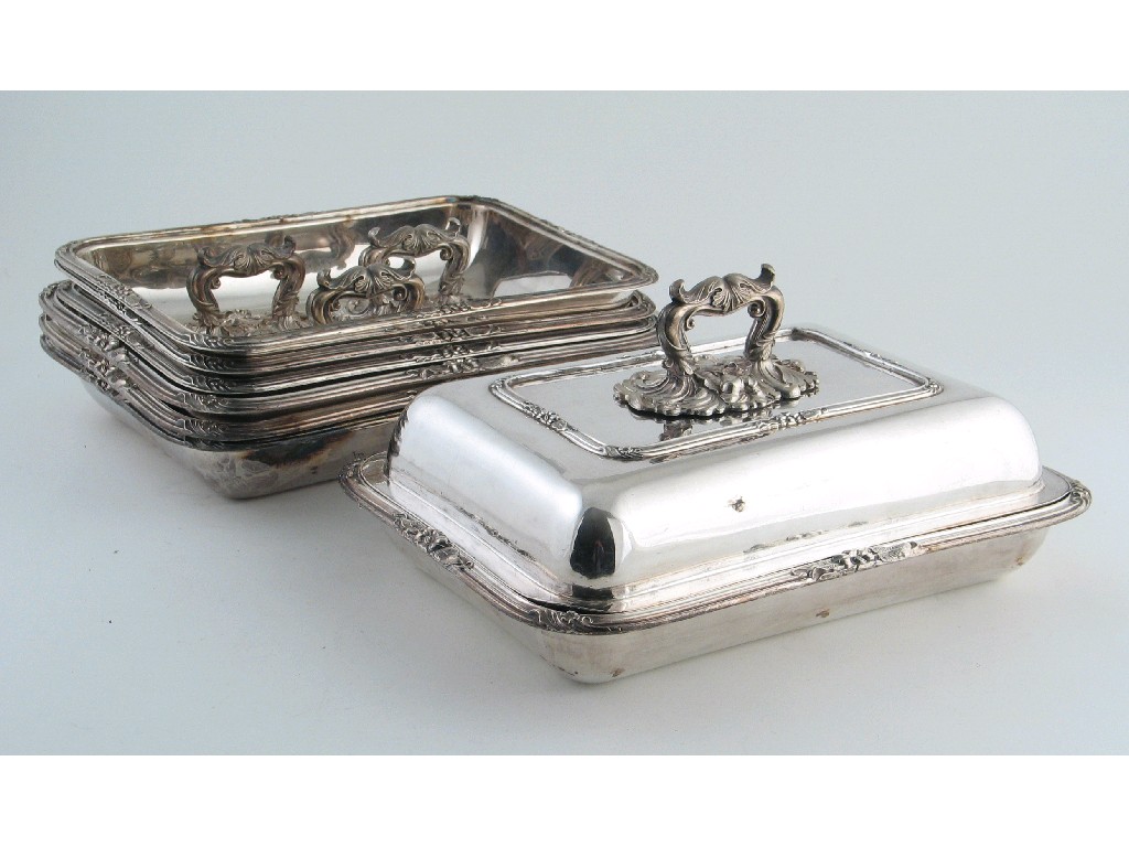 A set of four Old Sheffield plated oblong entree dishes and covers
