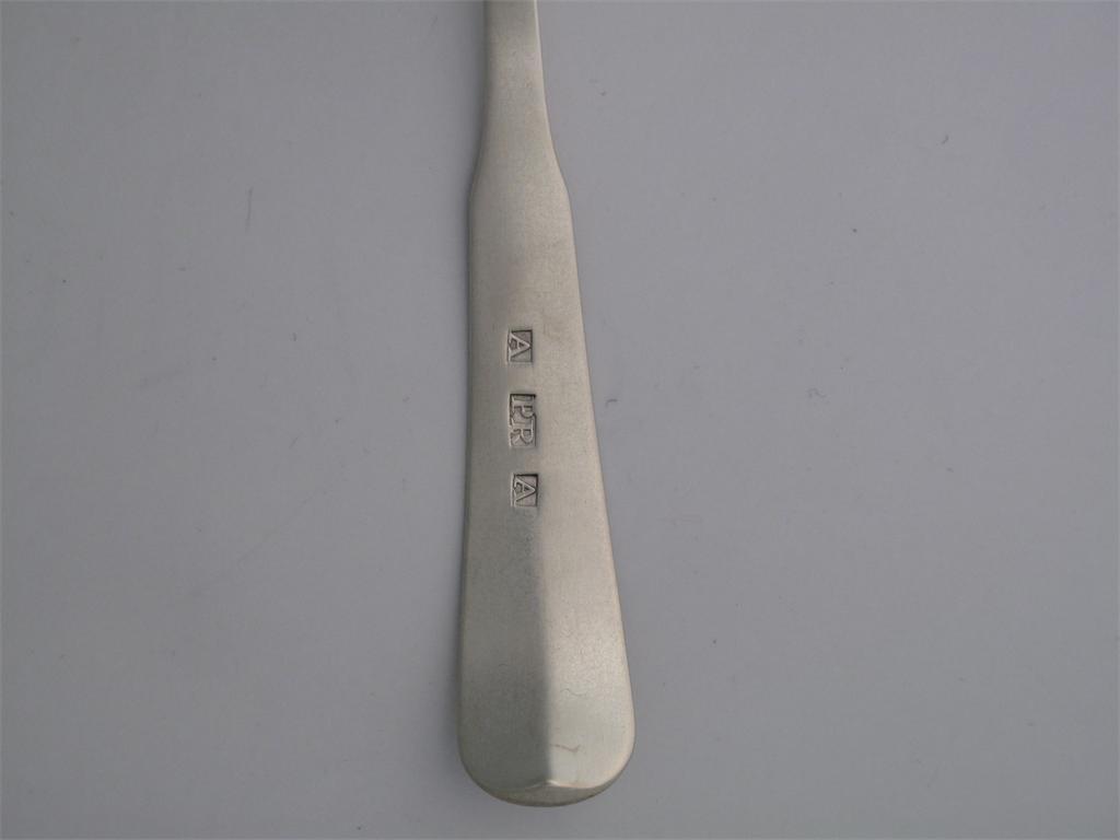 PETER ROSS: An elongated fiddle toddy ladle, c.1820, 0.75oz. Clean, good marks. (7/10)