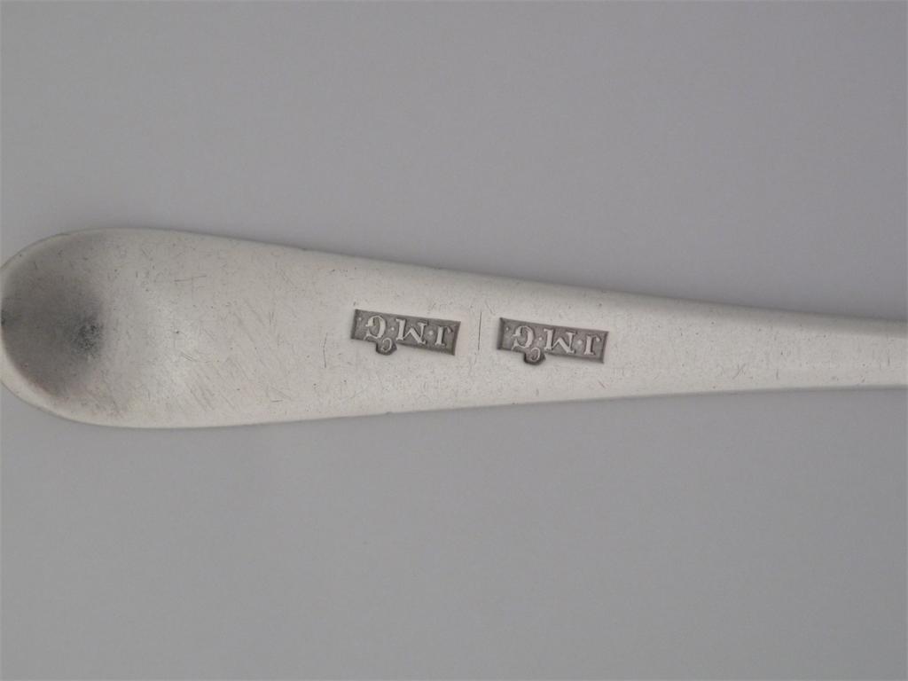JAMES McGREGOR: An Old English tablespoon, 1785-1800, 1.8oz. Erased, light polishing, but very good marks. (7/10)