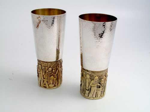 Two similar modern Limited Edition parcel gilt beakers, commissioned by the Dean & Chapter of York in 1972 (with certificates and case, no250 and 450). 32.5oz. (2)