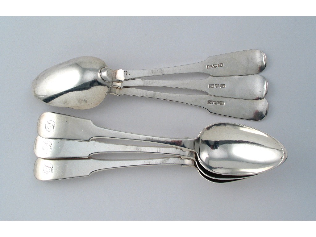 A set of six George IV Scottish fiddle pattern tablespoons