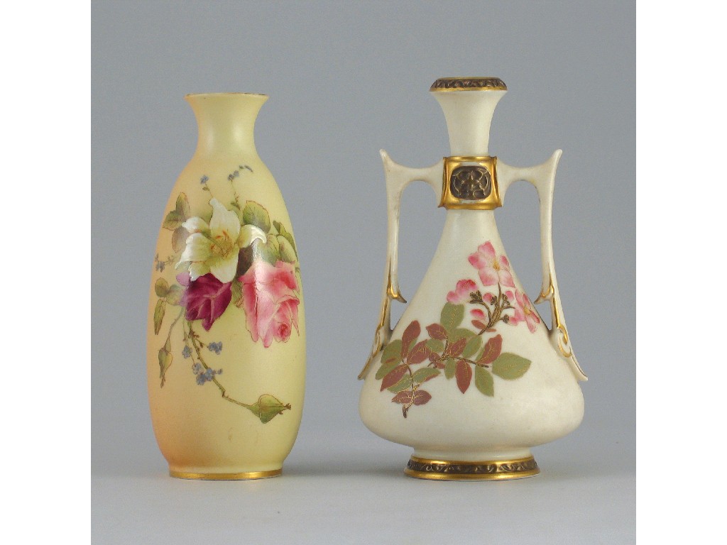 Two Royal Worcester vases, each decorated with flowers, c.1890 and 1914, 15cm. (2)