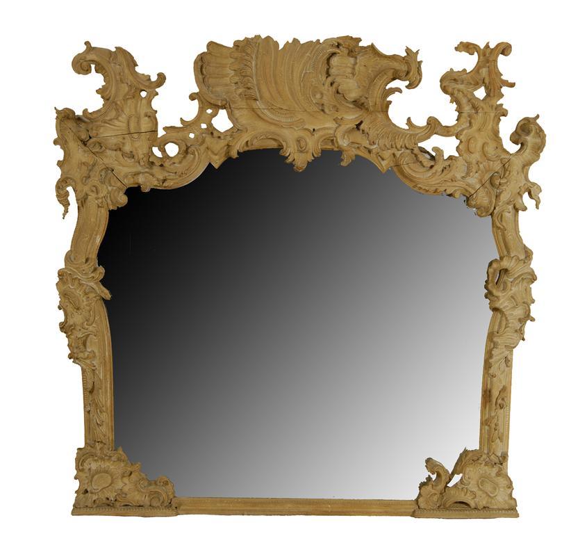 A 19th century continental carved oak overmantel mirror, the shaped plate to a rocaille decorated frame with scrolling foliage, possibly German, 64.75 x 65in (164.4 x 164.7cm).