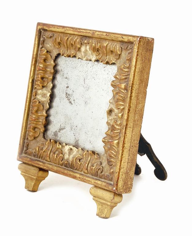 An Italian giltwood and gesso small easel back mirror, with a square plate and leafage inner frame, 11 x 9in (28 x 23cm).