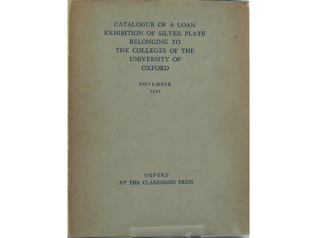 Catalogue of a loan exhibition of silver plate, belonging to the colleges of the university of Oxford, 1928 with dust wrapper.