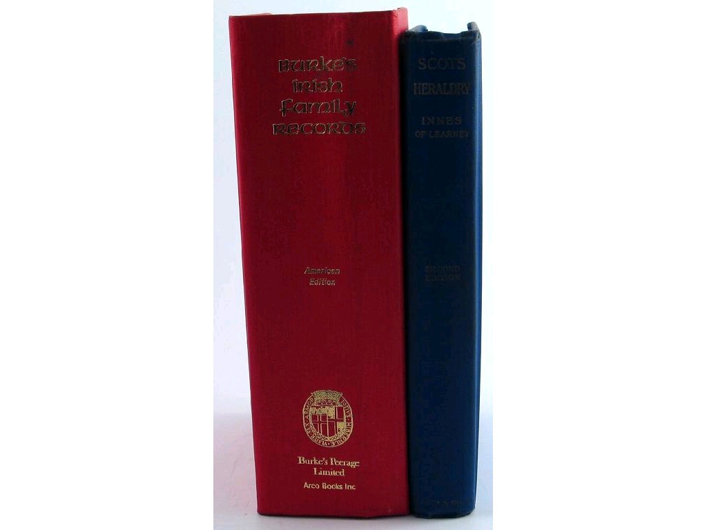 Heralding and Geneology: A carton of titles, Burkes Irish Family Records, Scots Heralding, Burkes Family Index, Burkes General Armory, Burkes Dormount and Extinct Peerages, New Extinct Peerage, Burkes family Records, Hayden's Dictionary of Dates (18th Edition), The Noble and Gentleman of England, Burkes Extinct of Dormount Baronetcies, Papworths Ordinary of Arms and 6 other volumes.