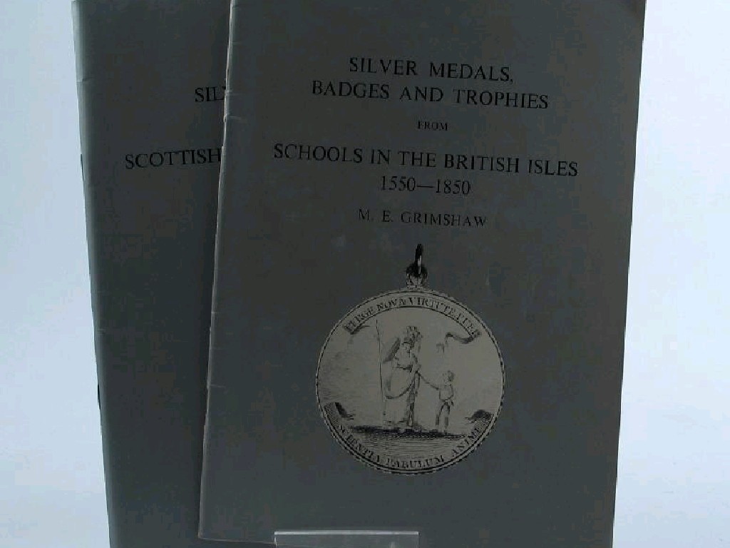 Two pamphlets on medals/badges: Grimshaw, M.E Silver medals, badges and trophies the schools in the British Isles 1550-1850 and Silver medals from Scottish and Irish schools before 1872. (2)