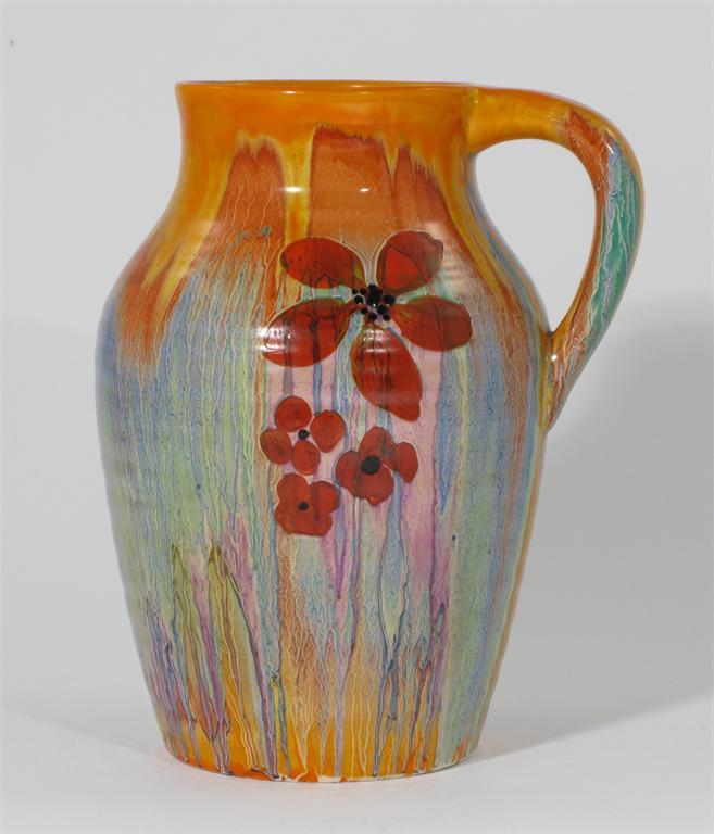 'Delecia Flower' a rare Clarice Cliff Bizarre single-handled Isis vase enamelled in red and black...