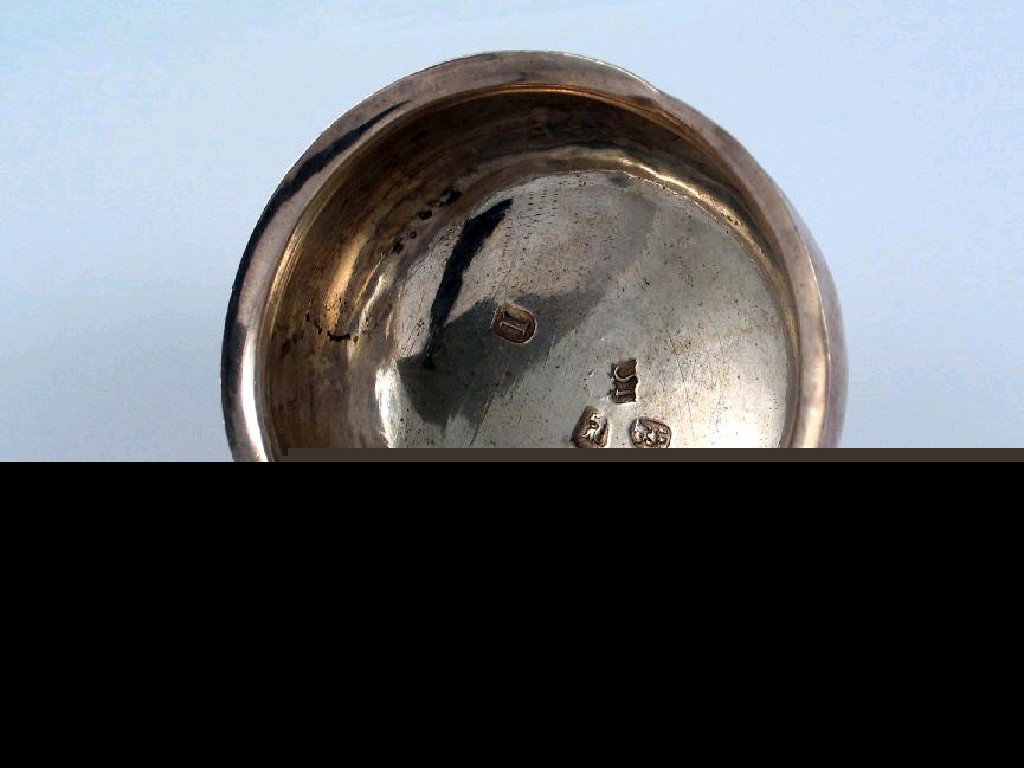 A George I punch ladle , with a plain circular bowl and a later whalebone handle by George Greenhill Jones, London 1724, 14.75in (37.5cm) long.