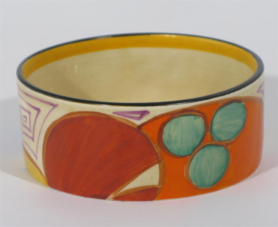 'Melon' a Clarice Cliff Fantasque Bizarre pot painted in colours printed factory mark 9.5 cm. diam.