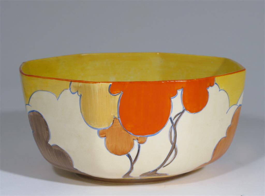 'Orange Autumn' a Clarice Cliff Bizarre bowl octagonal form